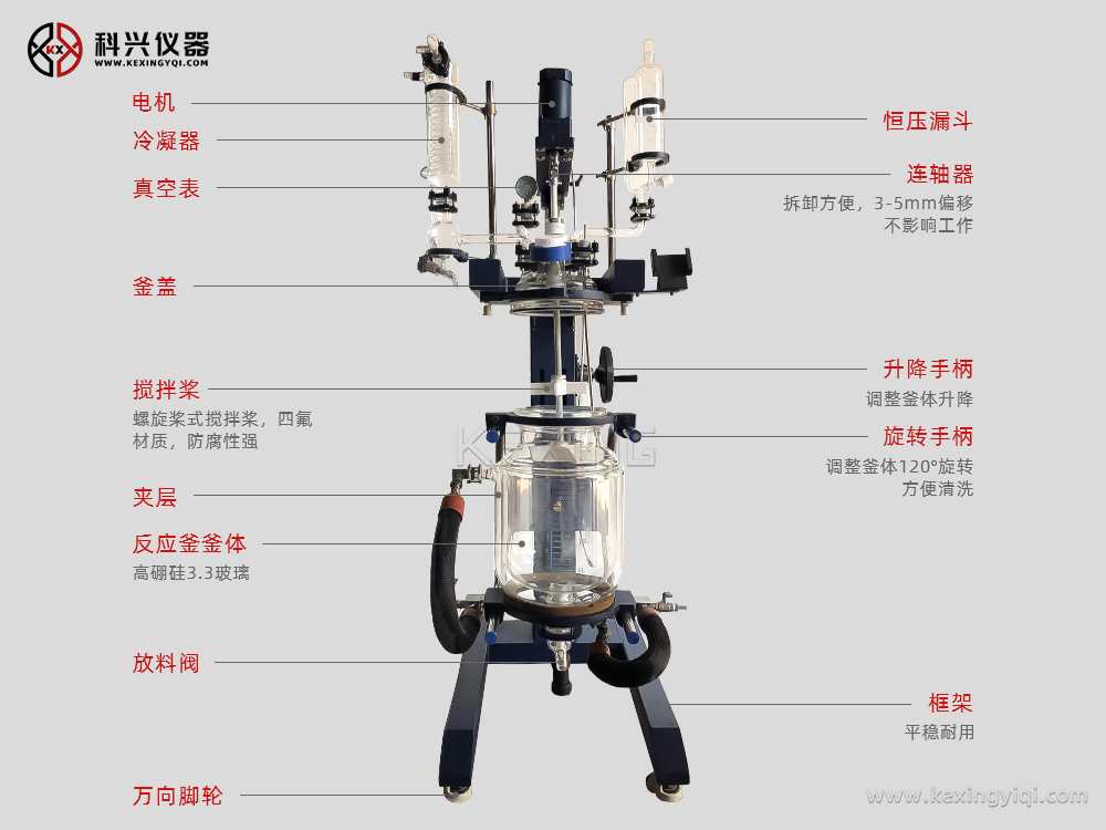 升降雙層玻璃反應(yīng)釜通過雙層反應(yīng)釜夾層,注入恒溫的(高溫或低溫)熱溶媒體或冷卻媒體,對反應(yīng)釜內(nèi)的物料進(jìn)行恒溫加熱或制冷,并且可以提供攪拌。物料在反應(yīng)釜內(nèi)進(jìn)行反應(yīng),并能控制反應(yīng)溶液的蒸發(fā)與回流,反應(yīng)完畢,物料可從釜底的出料口放出,操作極為方便。是現(xiàn)代化學(xué)小樣,中樣實(shí)驗(yàn)、生物制藥及新材料合成的理想設(shè)備。