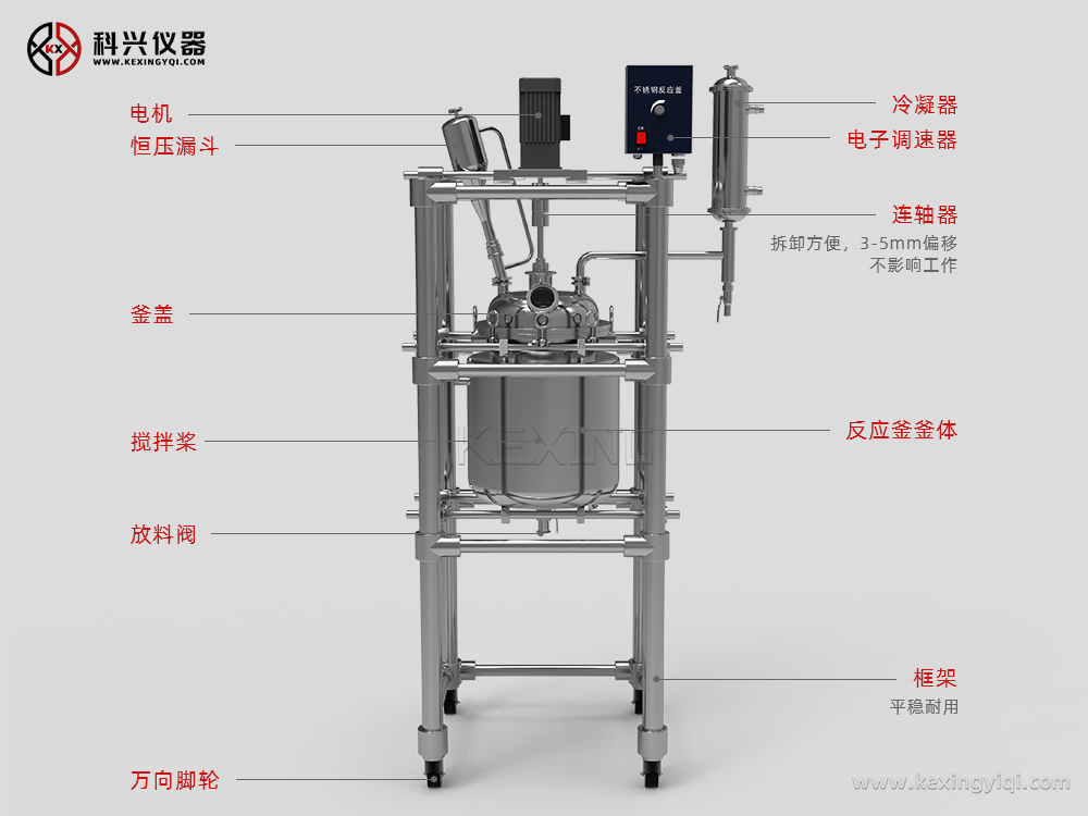 雙層不銹鋼反應釜是常用的生化儀器,廣泛地被現(xiàn)代精細化工、生物制藥、科研實驗等行業(yè)所選用,可在恒速、恒力、恒溫的條件下做濃縮、蒸餾、回流、分離、提純反應,是教學、實驗、中試、生產(chǎn)的理想儀器設備。 通過雙層反應釜夾層,注入恒溫的(高溫或低溫)熱溶液或冷卻液,對反應釜內(nèi)的物料進行恒溫加熱或制冷,并且可以提供攪拌。物料在反應釜內(nèi)進行反應,并能控制反應溶液的蒸發(fā)與回流,反應完畢,物料可從釜底的出料口放出,操作方便。是現(xiàn)代化學小樣、石油化工、中樣實驗、生物制藥及新材料合成的理想設備。